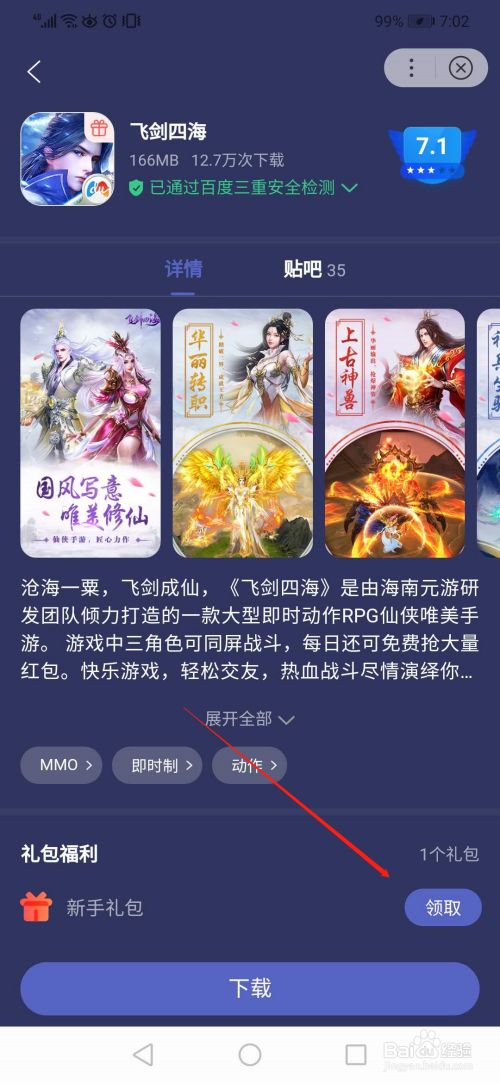 第四步,点击对应的游戏,跳转到游戏详情页,点击‘领取’按钮,如下图所示: