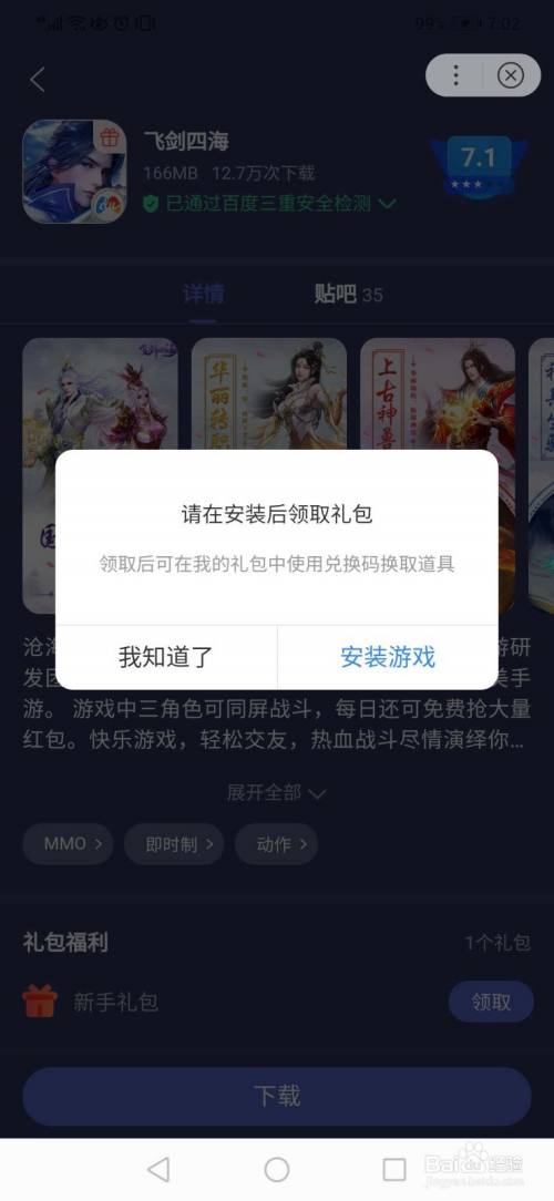 第五步,若是已经下载游戏,则提醒领取当作功;若是还没有下载游戏,提醒需要先下载游戏,如下图所示: