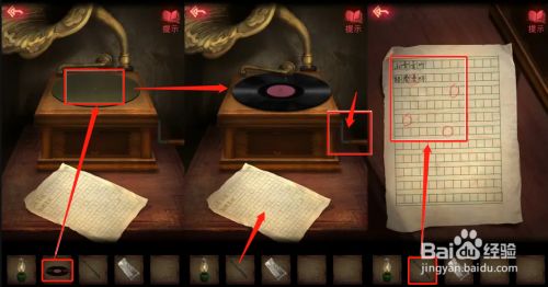 然后点击房间角落的留声机,将唱片放到留声机上,点击把手,用铅笔点击桌上的纸张,写出歌词。