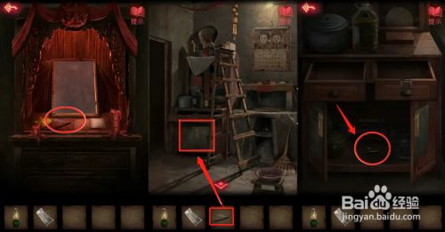 进入地下室在神龛上拿到剃须刀,然后用剃须刀割开梯子旁下方柜子符纸,拿到口红。
