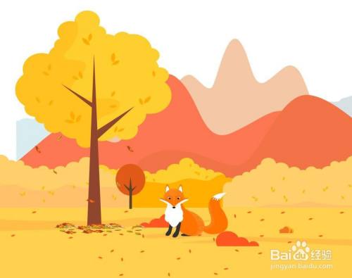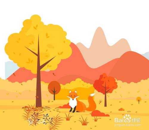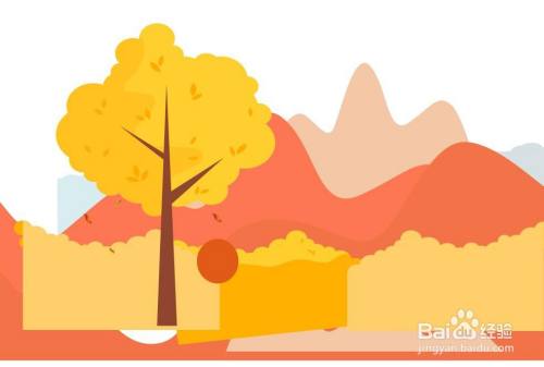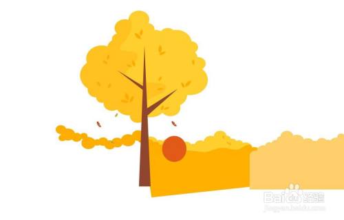 首先,画一个卡通的小树,树叶部门填充金色,周围画一些四周的景物。