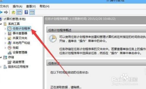 在打开的“计较机办理”窗口中,找到左侧系统东西下的“使命打算程序”菜单项。