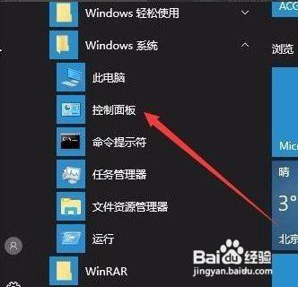 在Windows10系统桌面,依次点击“起头/Windows系统/节制面板”菜单项。