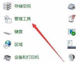 在打开的节制面板窗口,找到并点击“办理东西”图标。