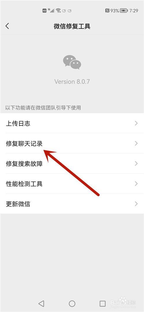 在微信修复东西界面,点击修复聊天记实选项。