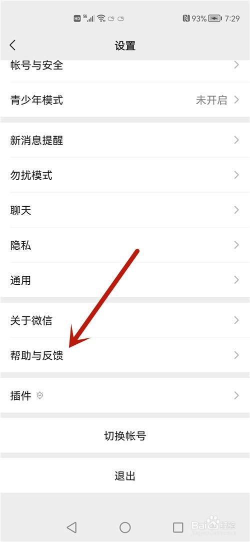 在进入的菜单界面,点击帮忙与反馈选项。