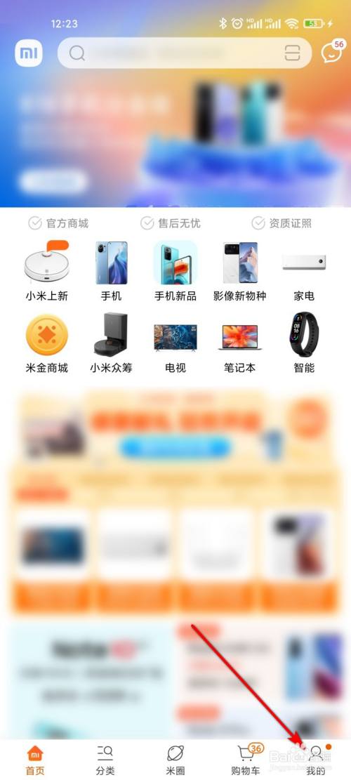 在手机上打开“小米商城”,并点击右下角的“我的 ”。