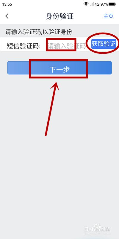 APP需要验证用户身份。点击【获取验证码】后,把收到的手机验证码输入,再点击【下一步】。