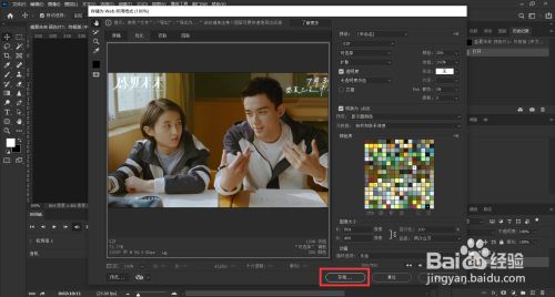 点击右上角“文件”->“导出”->"存储为web所用格局"