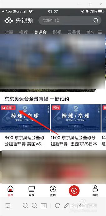 Z进入央视频本家儿界面,切换至“奥运会”选项。
