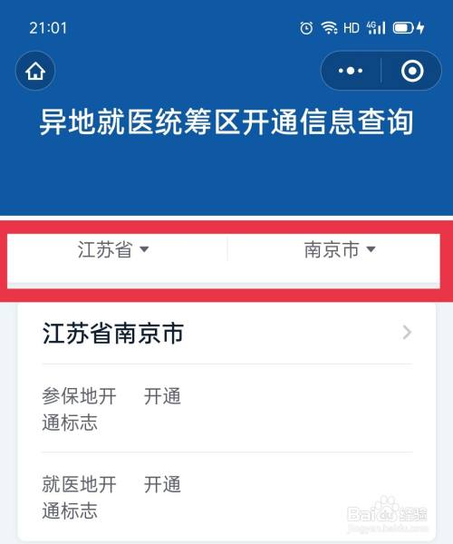 选择需要查询的省、市,即可查询异地就医统筹区开通信息。