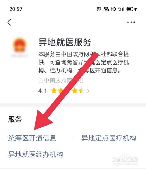 点击“统筹区开通信息”。