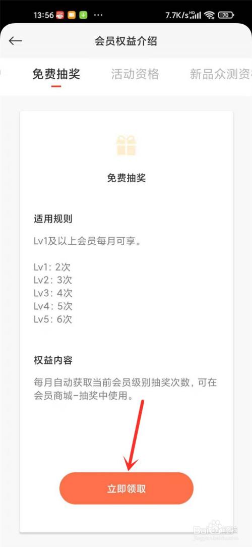进入免费抽奖活动界面,点击【当即领取】,即可领取免费抽奖机遇。