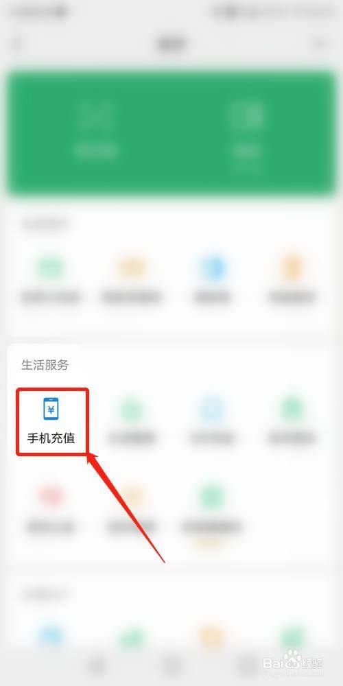 然后点击糊口办事下的【手机充值】,如下图所示。