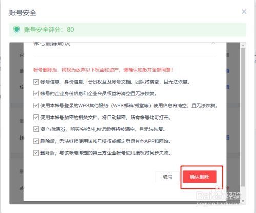 打开如下图界面,滑动鼠标滚轮,找到永远删除账号选项,点击后面的删除选项