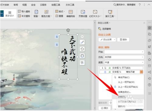 这样文字就会从上而下一行一行的显示,若是感受文字显示的太快,单击右键选择计时。