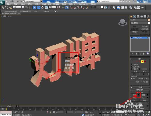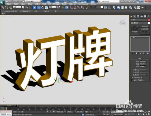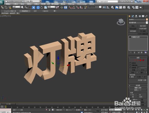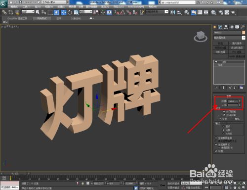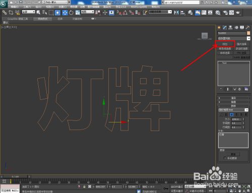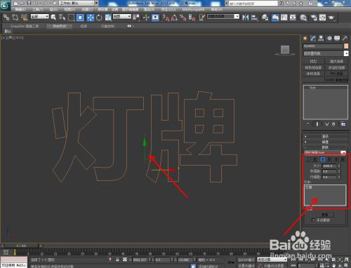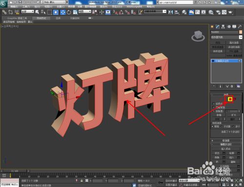 点击【建立】-【图形】-【文本】,按图示参数建立一个文本后,点击【挤出】并设置好挤出参数,生当作文字立体模子。完当作后,将模子转换为可编纂多边形;