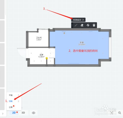 选中顶面,吊顶东西里进行吊顶设计。