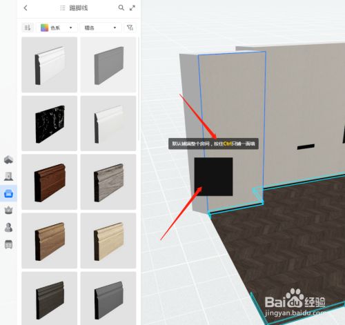 在公共素材库里选本身想要的墙面材质;地面材质。