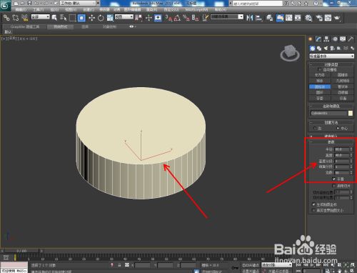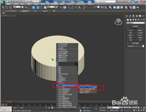 点击【建立】-【几何体】-【圆柱体】,按图示绘制一个圆柱体模子后,点击鼠标右键-【转换为】-【转换为可编纂多边形】;