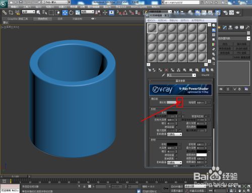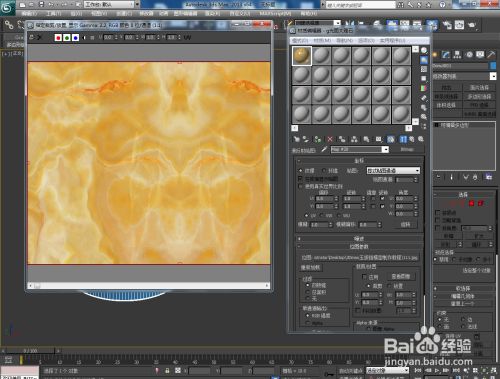 打开【材质编纂器】,按图示参数设置一个玉石材质球后,点击【漫反射】右边的小方框,为材质球添加一张玉石纹理贴图。完当作后,将材质球附加给板手印型;