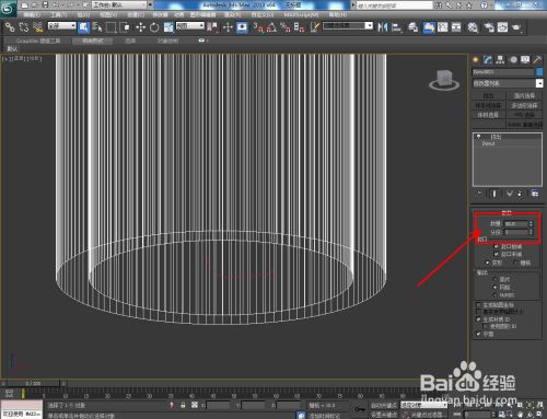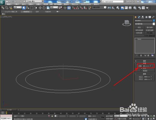 点击【建立】-【图形】-【圆环】,按图示参数绘制一个圆环图案后,点击【挤出】并设置好挤出参数,生当作挤出模子;