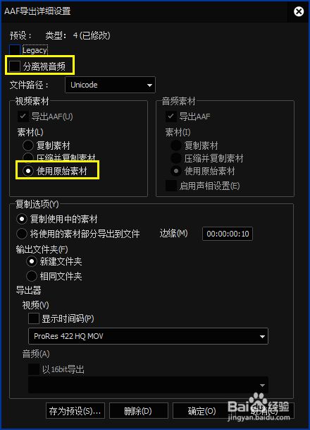 - Edius导出AAF时,不要选择利用原始素材,因为导出后会因名称的改变而无法联系关系素材