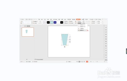 在插入选项卡中点击外形,选择此中的梯形,在页面上绘制出梯形,具体的大小如图所示。