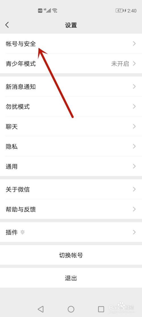 当作功登录微信,打开设置,再点击【帐号与平安】。