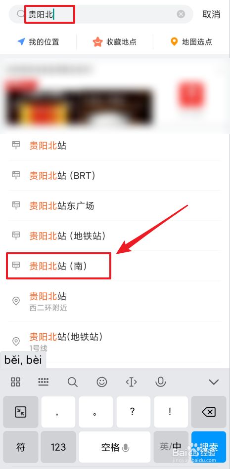 - 出发地默认为当前位置,也可以选择其他出发地。