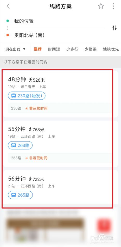 在线路方案界面,即可查看到可乘坐的公交。