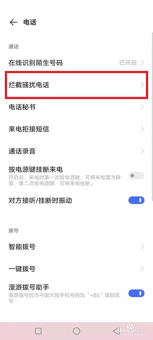 打开阻挡骚扰德律风。