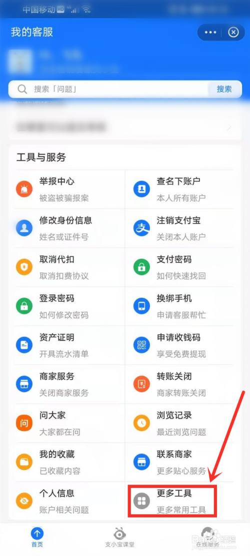 进入客服中间,下拉页面找到【东西与办事】,点击下面的【更多东西】。