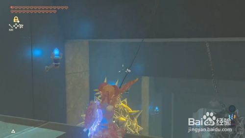 然后经由过程三个摆动的铁刺滑翔下去,第一个铁刺可以用弓箭射断绳子失落下去。