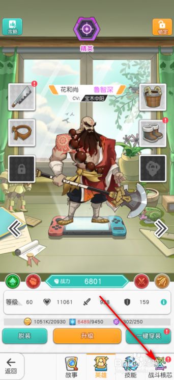接着再在【英雄】页面选中要晋升战斗核芯的那名英雄。