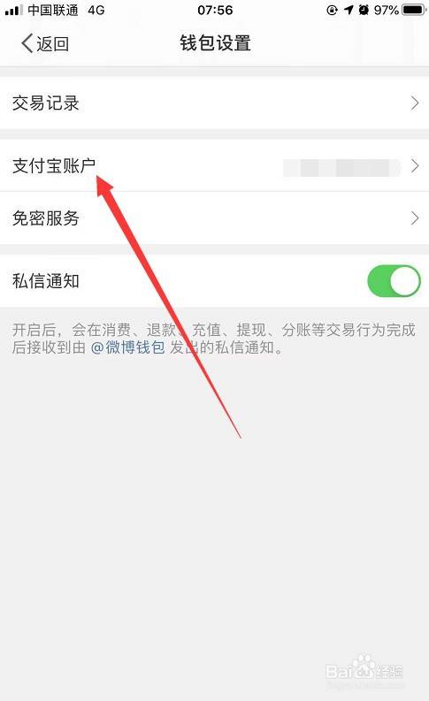 然后,找到“支付宝账户”一栏,点击进入