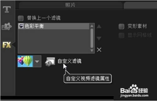 第三步:单击属性面板,选择自界说滤镜按钮。