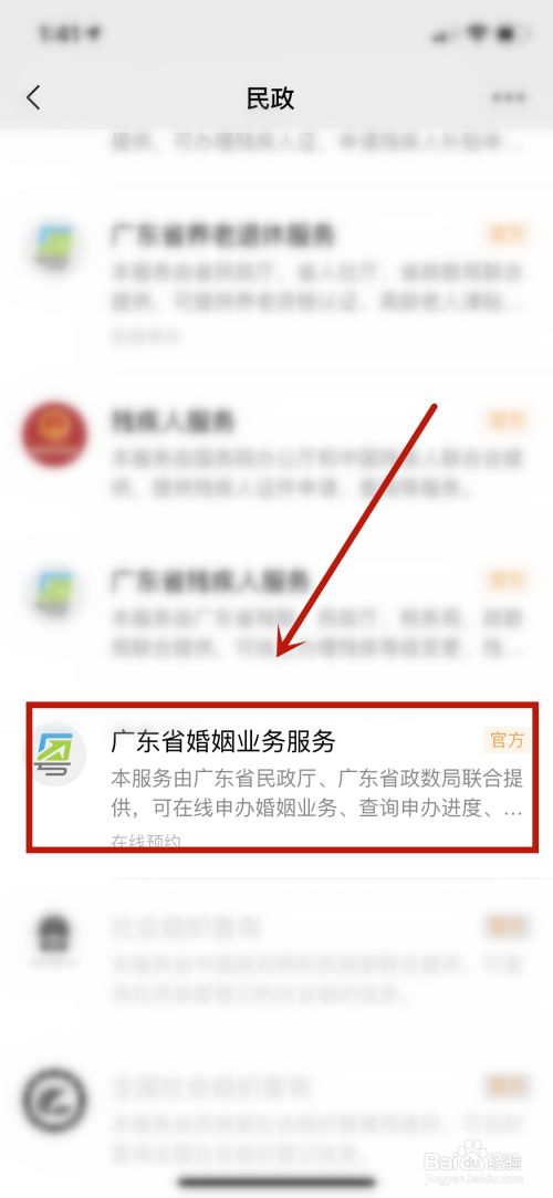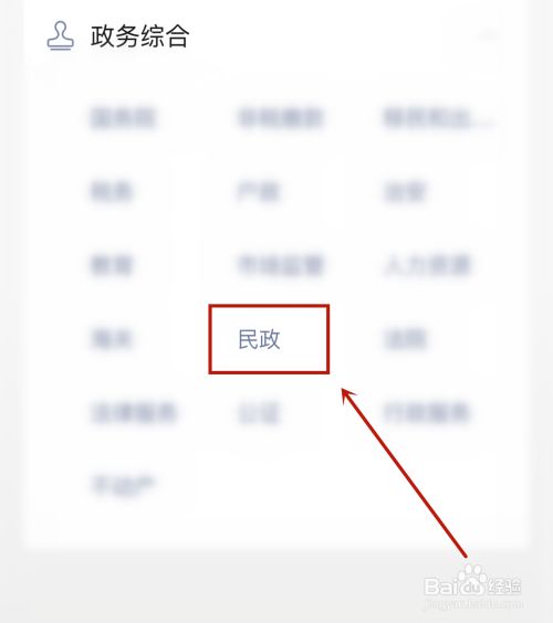 拉到下方找到【政务综合】,点击并选择【民政】;