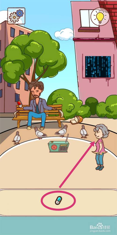 点击【蓝色胶囊】给老太太,就会穿越时空。