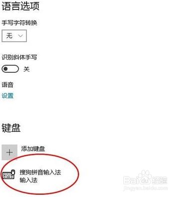 6、因为已经安装了搜狗拼音输入法,所以选择删除win10自带中文输入法。点击【微软拼音输入法庆袜】后的删除。