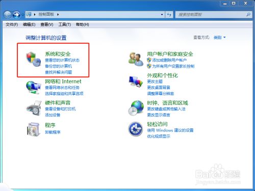1、首先需要建立一个还原点。打开节制面板,选择系统和平安。