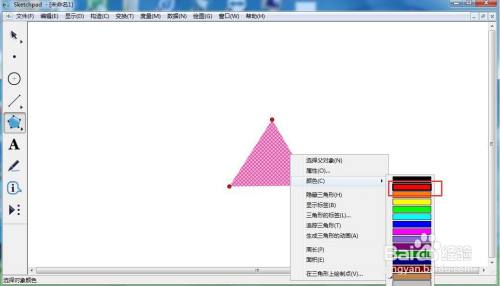 在三角形上按右键,点击颜色,选择红色;