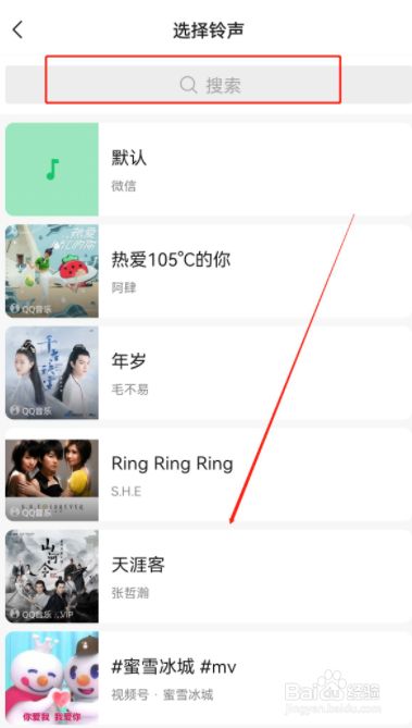 第五步、在搜索框中国输入喜好的来电铃声或者鄙人方选择一首喜好的来电铃声即可,如下图所示