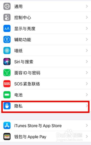 滑动界面找到隐私。