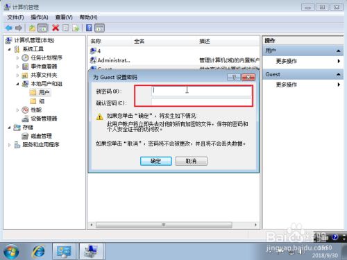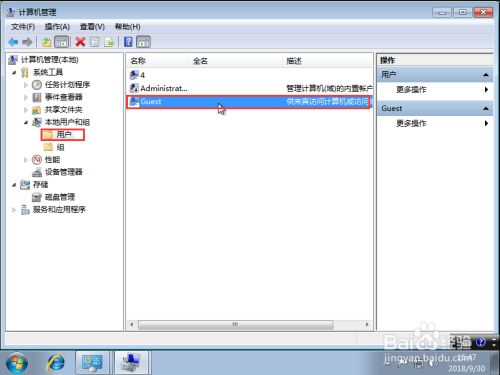 8、在计较机办理的当地用户和组中,我们点击用户右侧的Guest宾客双击,