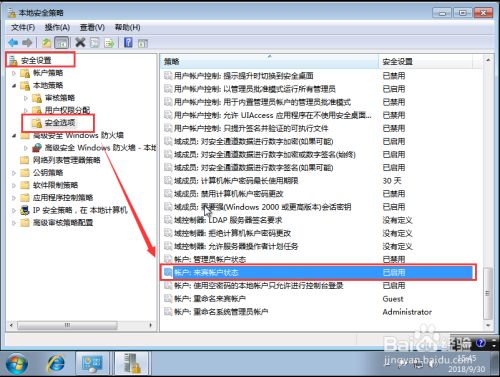 6、我们必需要确保在当地平安策略的平安选项中,我们的“宾客用户状况”是“启用”状况,