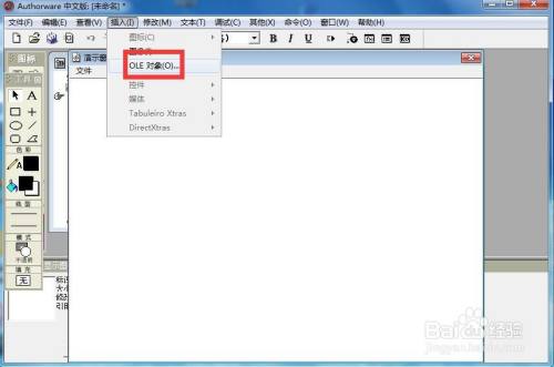 点击插入菜单下的OLE对象;