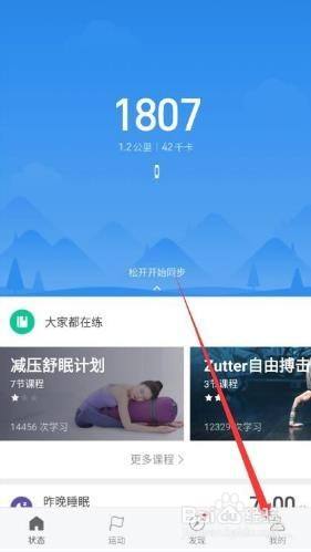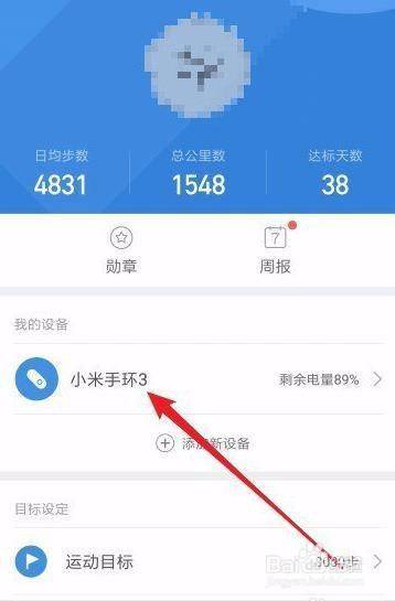 3、在我的页面中,找到我的设备中的【小米手环4nfc版】菜单项。