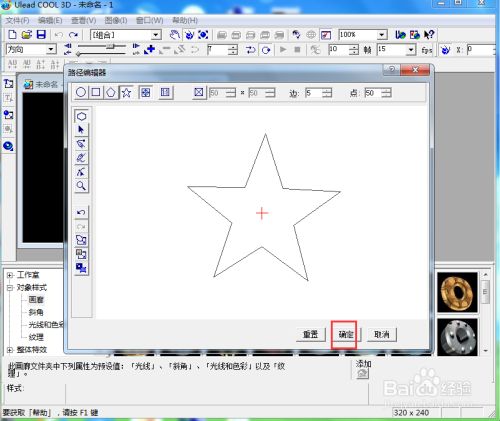 按下鼠标左键不放,拖动鼠标,建立一个五角星,按确定;
