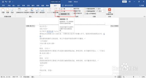 鼠标移动到正文第一页的页眉位置处,点击菜单栏上“设计-链接到前一节”,断开与目次页眉的链接。